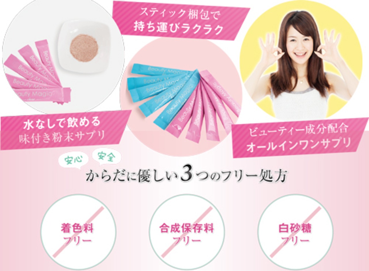 着色料・合成保存料・白砂糖不使用で健康にも配慮した美容サプリです。