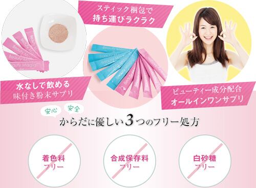 着色料・合成保存料・白砂糖不使用で健康にも配慮した美容サプリです。